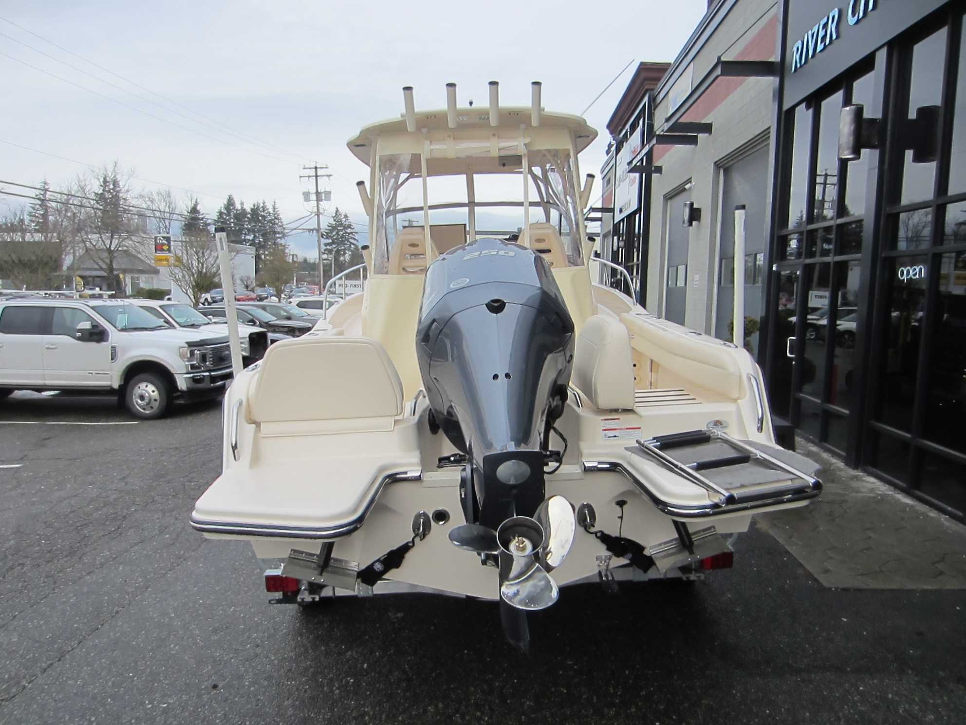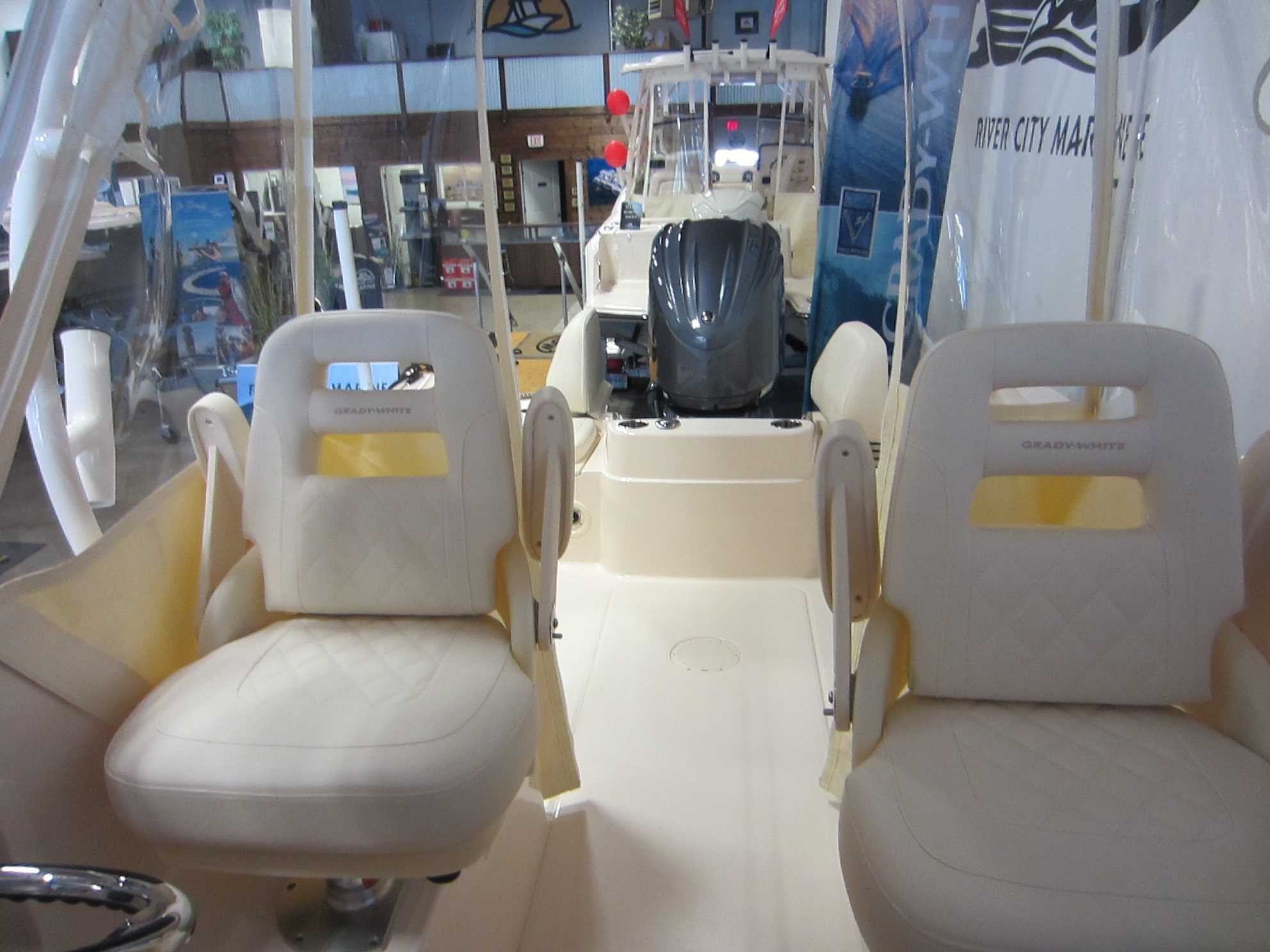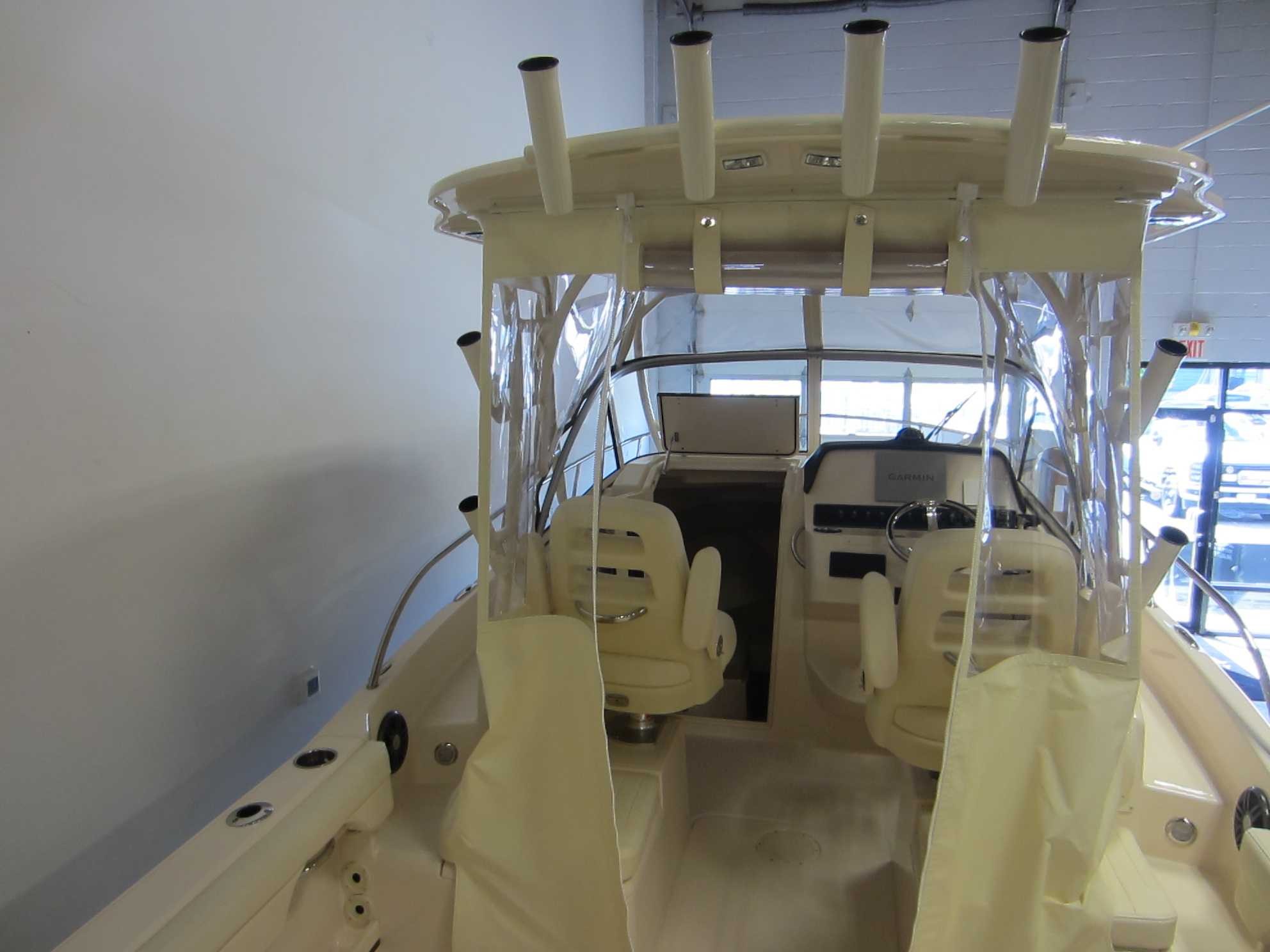 - Safety Automatic Bilge Pump (1100 GPH) (4164 LPH) Basic Flotation Bow Rail - 316 Grade Stainless Steel Cockpit toe Rails Composite Stringer System & Transom - Water Impervious Fire Extinguisher Holder Nonskid Fiberglass Liner Nonskid Recessed Walkaround Self-Bailing Cockpit w/Cockpit Drains (2) Stainless Steel Through-Hull Fittings Cabin Berth - Forward vee Berth Door - Lockable w/Screen & Companionway Hatch Forward Hatch - Low Profile Acrylic Hatch w/Screen Head - Portable with Dedicated Storage Lighting - Indirect Throughout Rod Storage - Horizontal (4) Storage - Under Berth Compartment Windows - Opening Windows w/Screens (2) Cockpit & Deck 100% Hand Laid Seav Hull & Deck Accessory Outlet - 12V (2) Batteries (2) w/Battery Select Switch (1) Cleats - Flush Mount (Pull up) Cockpit Bolsters Cockpit Lights - Blue LED Compass Companion Grab Rail Deck Hardware - 316 Grade Stainless Steel Through-Bolted Drink Holders - Stainless Steel (9) Engine Flush System w/Hose Attachment Aft Factory Engine pre-Rigging Fish box - 100-qt. (94.6 l) Port Insulated Fish box w/ob Drain Fish box - 106-qt. (100.3 l) Starboard Insulated Fish box w/ob Drain Flush Mount Electronics Area Footrests - Helm & Companion Hydraulic Trim Tabs w/Indicator & Retractor International Lighting Rod Holders (4) Rod Storage Racks - Horizontal (6) Rubrail - High Density PVC w/Stainless Steel Insert Seating - Aft Jump Seats (2) w/Innovative Swing-Open, WalkThrough Backrests & Reversible Self-Stowing Cushions w/non-Skid Safety Treads Seating - Deluxe I Helm & Companion Chair (2) Seating - Port & Starboard Fish box Cushions Steering - Hydraulic Tilt Steering Wheel - 316 Grade Stainless Steel w/Knob Stereo System w/Waterproof Touch Screen Display, AM/FM Tuner & Wi-Fi & Bluetooth Connectivity; Speakers - Helm (2), Cockpit (2) Stern Eyes - 316 Grade Stainless Steel Storage - Aft Lift Out Boxes (2) Storage - Forward Anchor Locker w/Rode Storage Storage - Lockable Storage box Swim Platforms - Aft Port & Starboard Extensions w/Starboard Ladder Vista Top w/Front,
