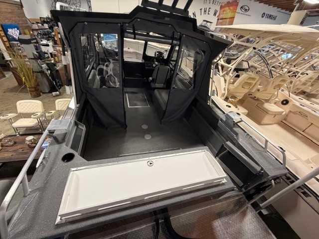• Welded Full-Width Transom Platform w/ Undermount Telescoping Ladder